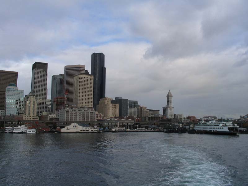 Leaving Seattle by ferry; Smith Tower and skyline