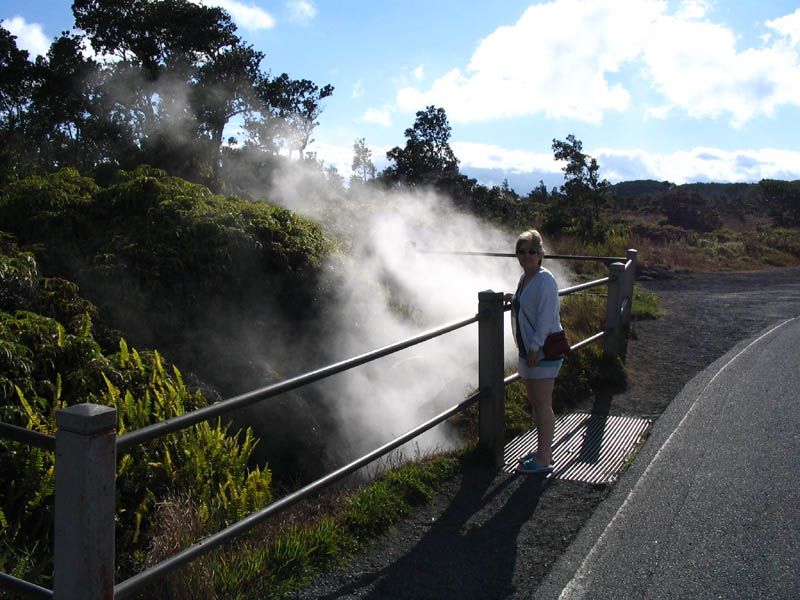 Patti, looking 'steamy' at steam vent, Kilauea, Hawai'i