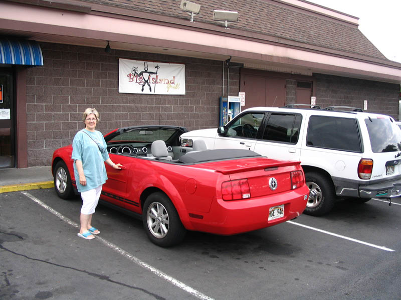 Hot lady with hot car at the Big Island Grill, Kailua-Kona, Hawai'i