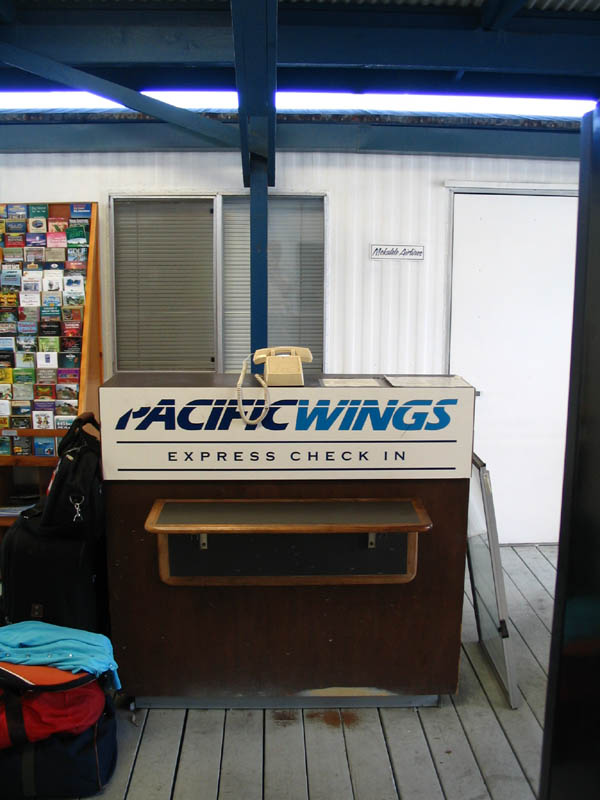 Travel Day to Maui, our airline's ticket 'counter,' Kona airport, Hawai'i