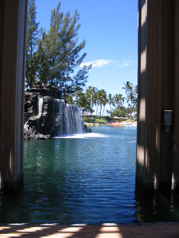 Waterfall from the grand staircase, Hilton Waikoloa Village, Hawai'i